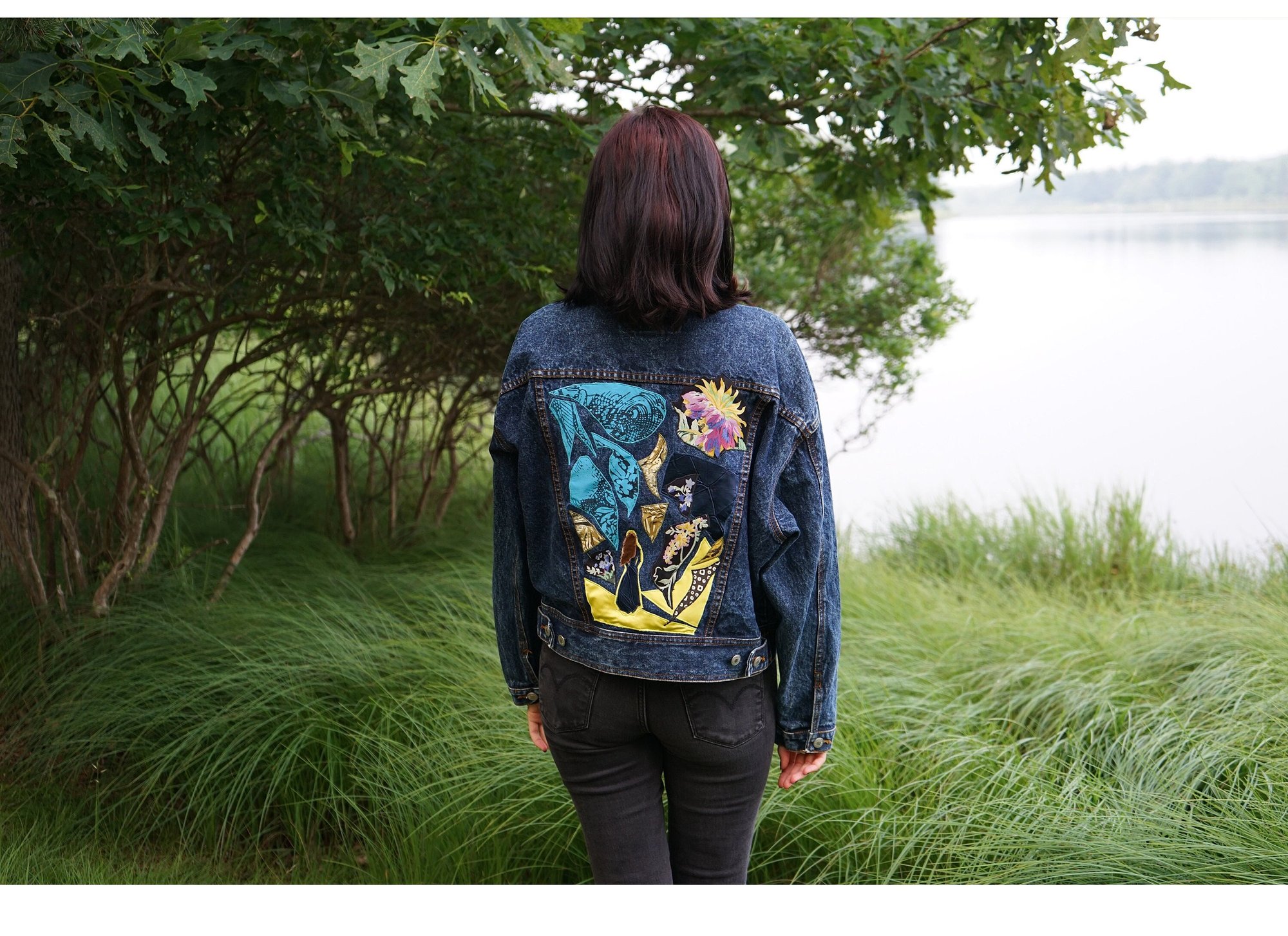 Embellished Denim Jacket, Size Medium, Denim Art, Wearable Art