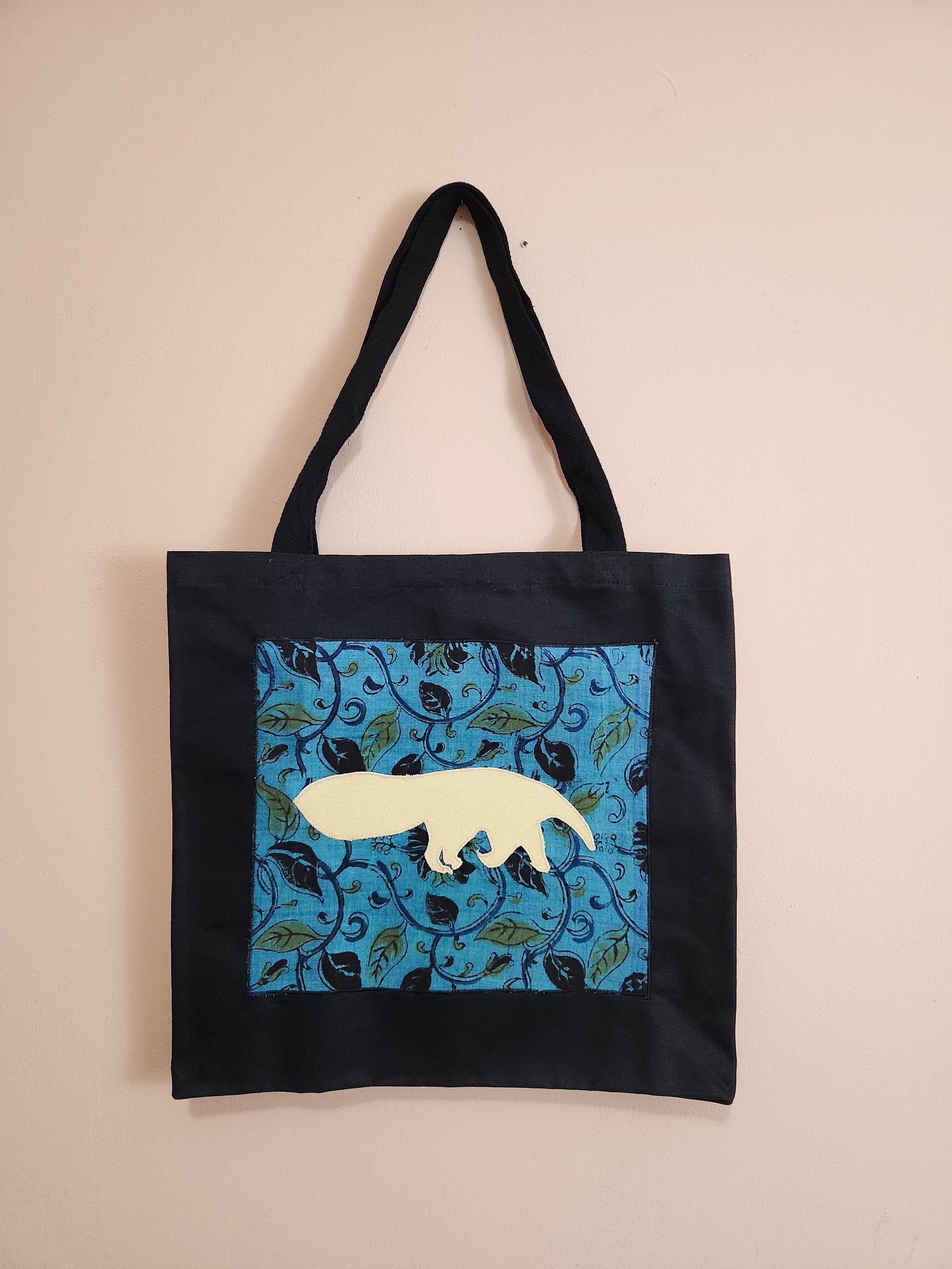 Hand Embellished Canvas Bag, "Anteater Otherwise", One of a Kind Tote Bag, Hand Made Everyday Bag